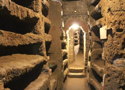 Scavate nel tufo, tenera roccia vulcanica utilizzata per la costruzione di mattoni e calce, le gallerie si estendono per circa 13 km. di lunghezza, in vari livelli di profondità. Il primo piano, il più antico, si snoda in percorsi irregolari di gallerie, nelle cui pareti sono ricavati i "loculi", le tombe comuni dove il corpo era posto, avvolto in un lenzuolo, direttamente sulla terra, cosparso di calce ad impedirne la rapida putrefazione, e murato con marmi o tegole. Sulle tombe le iscrizioni erano in greco o in latino, o c'erano piccoli oggetti a permettere il riconoscimento delle tombe anepigrafe. Solo in questo primo piano, dove erano sepolti i Martiri, troviamo piccole stanze, i "cubicoli",tombe di famiglie abbienti o di martiri, e gli arcosoli, altro tipo nobile di tomba, spesso decorati con pitture a soggetto religioso. Sono raffigurate, per lo più, storie bibliche dell'Antico o del Nuovo Testamento, che stanno ad esprimere la fede nella salvezza e nella risurrezione ottenuteci da Gesù. Sulle lapidi tombali sono frequenti anche i simboli, significativi per i cristiani e incomprensibili per i pagani: il più noto è il pesce, che nasconde le cinque parole "Gesù Cristo Figlio di Dio Salvatore" attraverso le iniziali delle cinque lettere greche che compongono la parola "ICTUS", pesce.